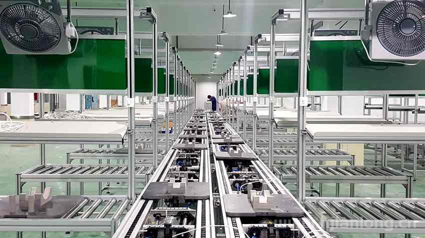 特性:全线采用工作站式装配系统和智能倍速链输送线相结合的模式,全自动定子热套设备、全自动点胶涂胶系统、全自动翻转机、伺服电动拧紧系统、半自动转子智能牵引装配系统等等,总成装配线和检测包装线之间采用机械手实现全自动搬运和过渡传输
